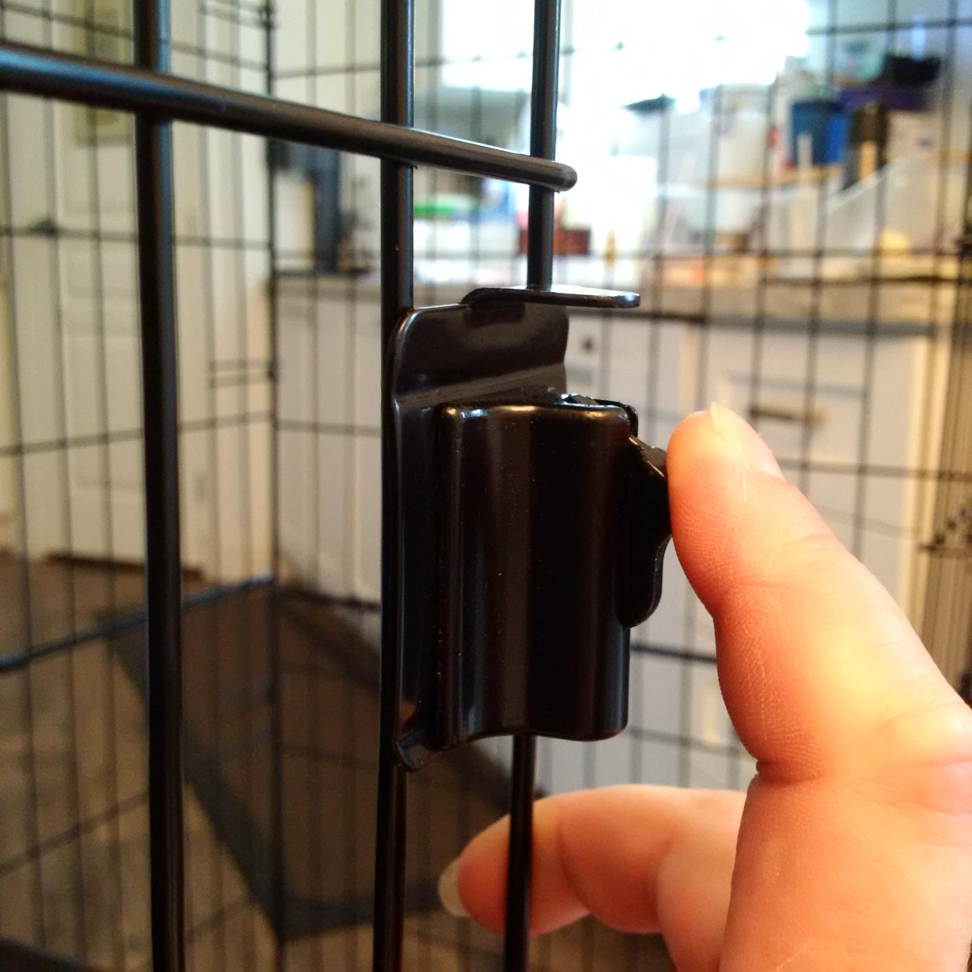 The the door and latching mechanism is very different, much simpler, easier, and can be done with just one hand. Each single door (one upper, one lower) is 17.5 inches wide and 19 inches high. This cage closes, not unlike a gate latch, and is opened with a simple thumb latch, super easy and smooth. BUT (with my critters), I find it is far less secure than the double swing doors (top and bottom) in the MidWest option that requires you to unclip, lift, then rotate to open. With the MidWest double doors, the opening is 23.5 inches wide and 18 inches high (five inches wider, but one inch shorter). As much as I love the sturdy, simplicity of the Amazon lock, I can see MY critters either accidentally or intentionally hitting the latch, releasing the door, and escaping – I suspect for most folks this would NOT be an issue and could easily be augmented with a bungie or dog leash clip.