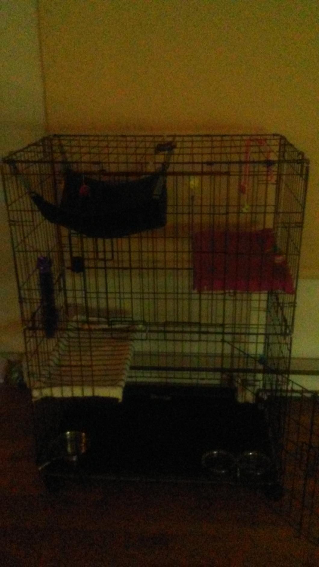 Overall a good cage for a kitten, hubby had to make a shelf from wood to go across cage as our 3 month old kitten could not jump the spans (3 adjustable shelves) across the cage.