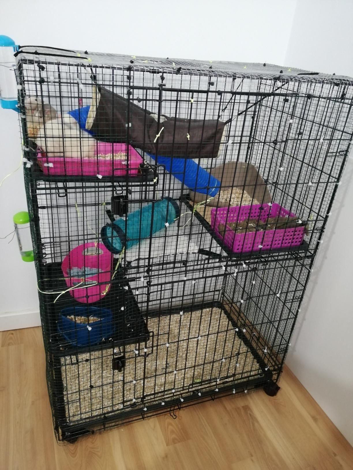 Amazing cage, unfortunately, I’ve tried it as a cheaper option for a chinchilla but he was able to escape through it.