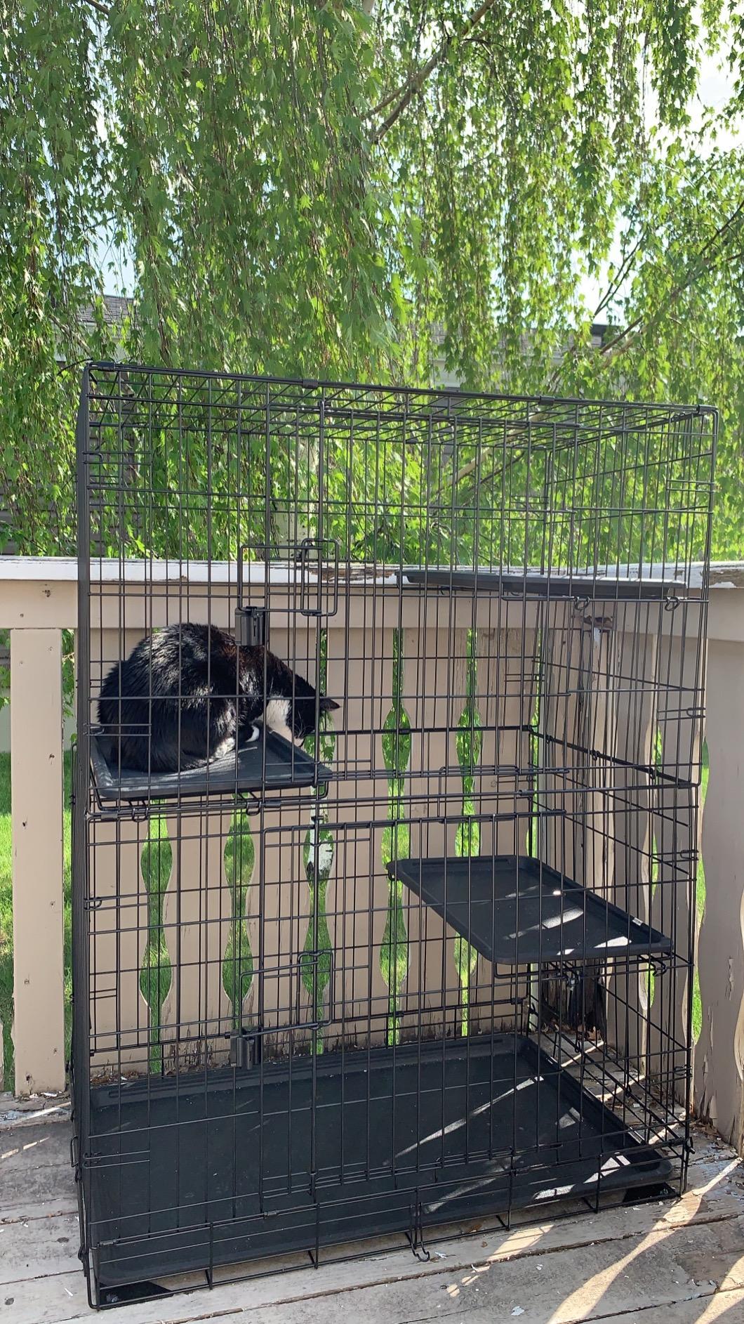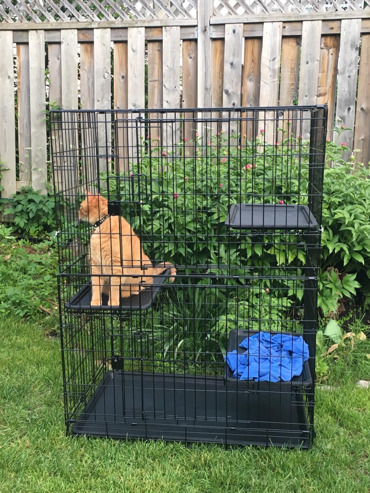 We decided to invest in this while having home renovations done. Tommy likes to escape when he can. My adult cat loves his condo. Keeps him safe outdoors. Nice size and easy to move around.