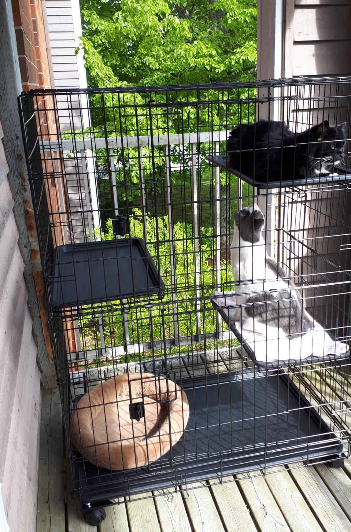All 3 of my cats love being on the balcony with me, they enjoy the fresh air for awhile then the next thing I look and they are all fast asleep. I put a plastic table cloth on the one end in case it happens to rain and they still want to stay out :). I was telling my brother and sister-in-law about it and they are getting one for their cat as she wants out to be near them but they live in the country so they are nervous – but with this catico they don’t have to worry and she gets to come out and enjoy outdoors with them. Highly recommend this product – exceeded my expectations.