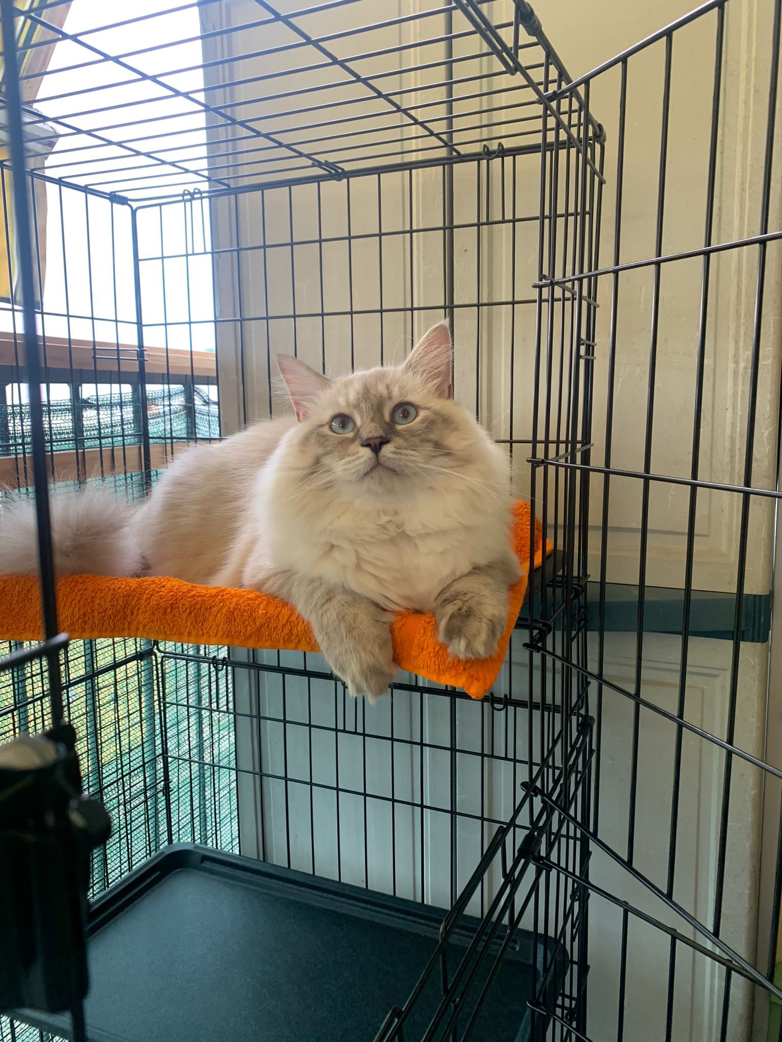 Moved house and needed safety for my male house cat for 3 months as we were back to my parents. He has the run of the room but on an evening he goes into the cage to sleep or if we need him in there for something like cleaning etc. His litter tray goes in ( didn’t keep his bed inside that was just to get his scent all over ) got a few blankets in there and he loves it!! He goes in here during the day to nap. He is confident and this hasn’t been a problem for him. Worth every penny!