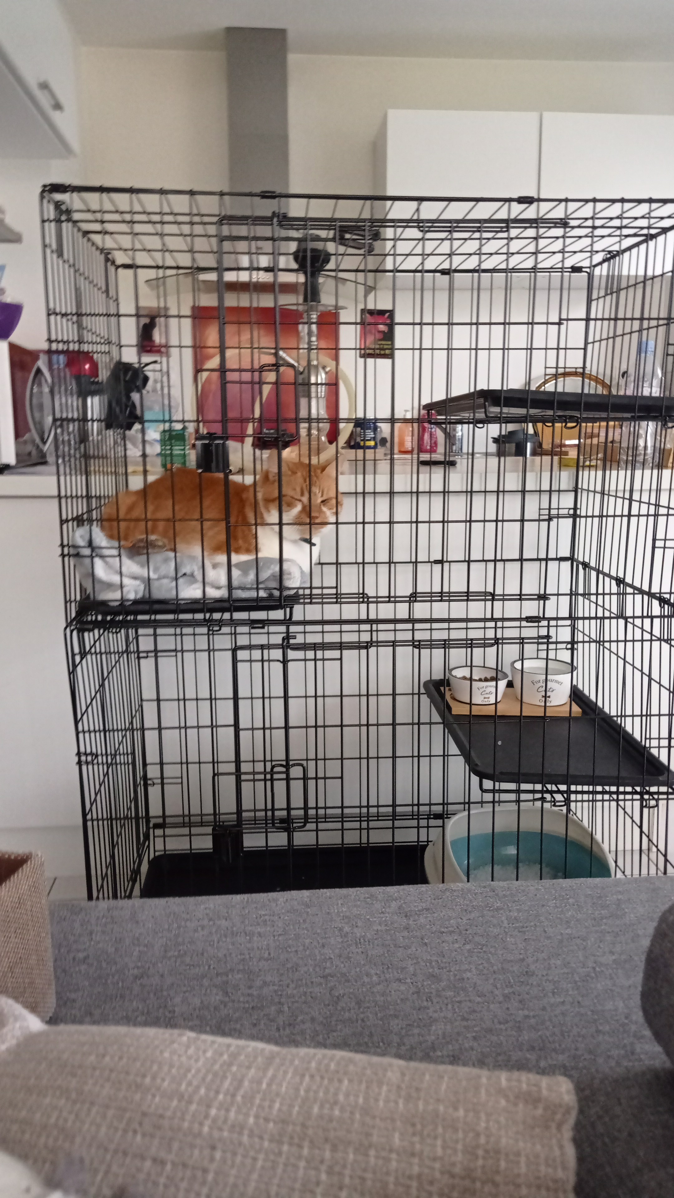 I am so happy with this purchase. My cat has been way too energetic and has been destroying anything she gets her paws in. This cage has kept her calm and when she’s out the cage she has a little stroll around the house and then goes back in by herself. I think she knows it’s home now. The cage is really big for her to play around in.