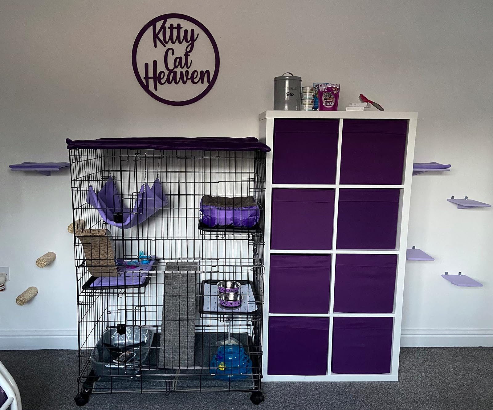 I bought this as I frequently foster kittens and have been looking for a proper set up for when i’m not home. Not only was this PERFECT but the price point is AMAZING. It has been a complete gamechanger. It was extremely easy to put together aswell and took under 10 mins. I like that the shelves can be put wherever you want and it comes with wheels on the bottom aswell to make it easier to move around!