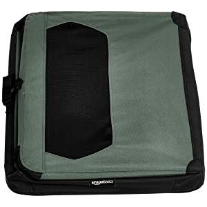 This crate has great features such as a good sized pouch that can unhook, another pouch on the top flap, Sherpa padding, as well as a water bottle holder and ID card holder on the back. I also really like that the flaps on the front and top can be rolled and have Velcro in place to hold them in the rolled position.