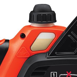 Ergonomic designThe BLACK+DECKER Chainsaw is ergonomically designed and is easy to use. At just 3.1kg, this is a very lightweight chainsaw, so it is easy to transport and maneuver, and reduces fatigue during prolonged work. The battery is positioned on the side of the chainsaw in order to distribute the weight evenly, resulting in a better balanced tool that is more comfortable to use. | Semi- automatic oiling systemThe tension of the chain can be quickly and easily adjusted with the tool-free dial, which simply winds up to tighten the chain, saving you time and effort. The semi-automatic oil system is easy to use, simply press a button to oil the chain. The system is leak-free and there is a small window which allows you to see clearly when the 53ml oil tank, needs to be refilled. | SafetyThe chainsaw has a lock off safety switch, whereby two switches must be pressed at same time to start tool, which removes any chance of accidental start. The primary handle has an over-moulded, rubber, non-slip grip for greater stability and security. The chainsaw is also fitted with an anti kick-back chain feature for added safety. |
