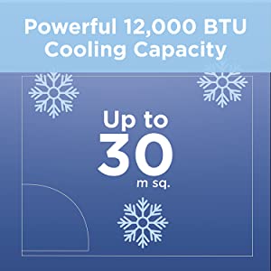 Smaller than average footprint considering the power of this unit. It is quite loud when it’s working at maximum. I just wish it circulated the air as it does look like the grille on the front should rotate. It would have been so much better if this was the case. But it certainly cools the room down quickly