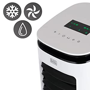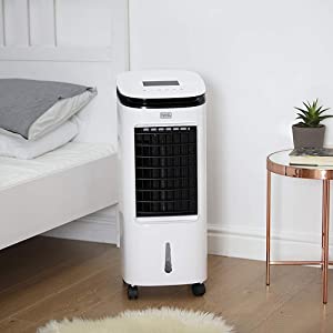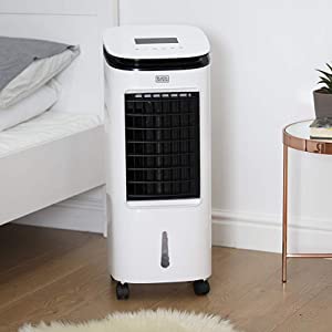 It’s a good compact unit with a powerful fan and cooling via water tray. You’ll need to maintain it though, clean out the intake filter on the back and empty the water bucket every couple of days and replace with fresh.