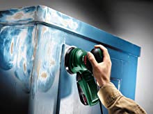 This orbital sander is the smallest in the Bosch series, but it does a wonderful job. It is good for sanding down wooden kitchen surfaces and making ready for oil-varnishing. Easy to use. Easy to change discs. easy to empty dust collector. Perfect device.