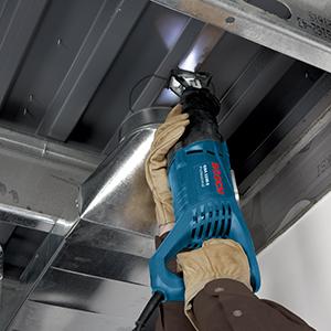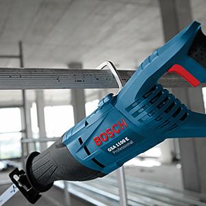 An illuminated viewA key feature of this sabre saw is its integrated LED lighting, which ensures a good view of the workpiece and its surrounding area even in a dark working environment. | Speedy workA powerful 1100 W motor generates fast progress through a variety of materials. Maximum cutting depth for the saw is 230 mm in wood and 20 mm in metal profiles or pipes. | VersatilityYou can use this heavy duty corded sabre saw on everything from wood and plastic to ferrous and non-ferrous metals, concrete and stone. |