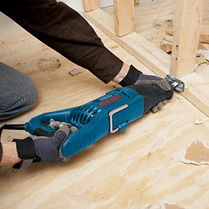 Swift switchesBlade changing is quick and easy thanks to the Bosch SDS tool-less system. | A firm holdAn ergonomic handle and rubber-coated gear housing give a secure and comfortable grip for confident and effective operation. | A handy hookThe sabre saw is fitted with a metal hook which can be used to hang it up conveniently between tasks. |