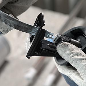 If you use a metal saw blade it’s great for cutting off old pipes or nail ends.