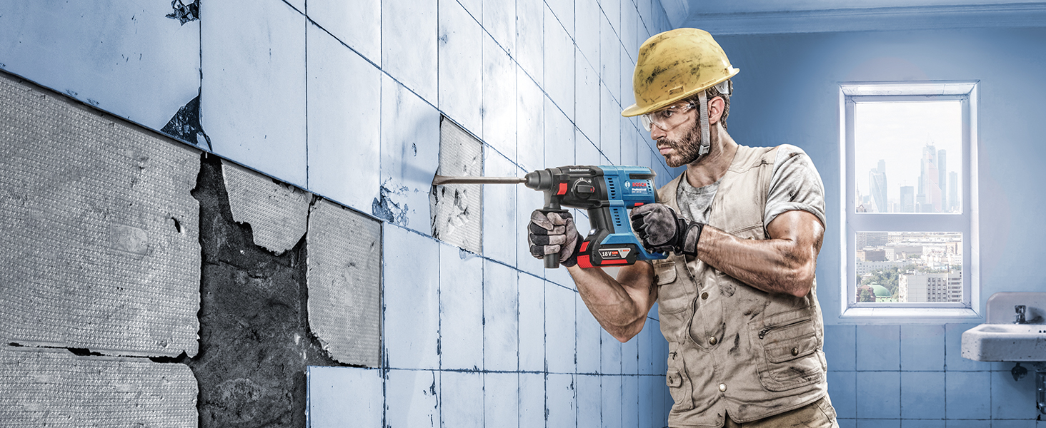 Der GBH 18V20 ist der optimale Helfer beim Renovieren. Egal, ob ein Loch fr einen Dbel gebohrt oder ein Kabelschlitz aus der Wand gestemmt werden muss, dieses Gert ist fr diese Arbeiten perfekt.