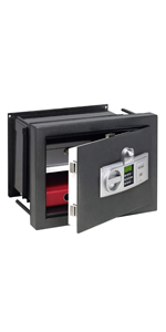 The electronic combination lock can be opened by an individual 6-digit access code, which can be programmed by the hotel guest using the easy-to-understand quick start guide. In addition, this model has an easy-close emergency opening lock and a programmable generic code. These precautions give the hotel quick access in emergencies.