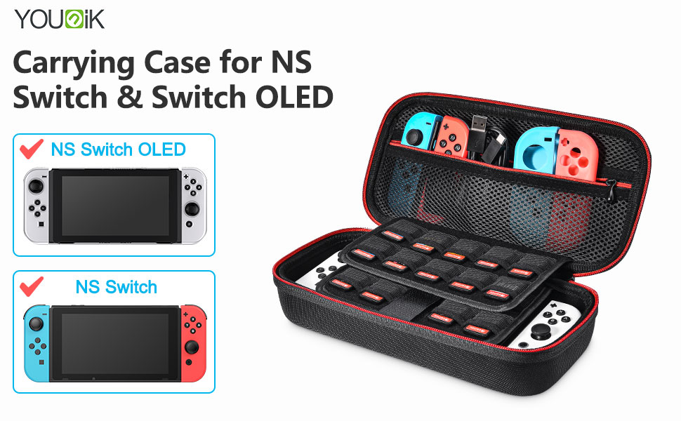 Case for NS Switch/Switch OLED – Younik Hard Travel Carrying Case with Large Storage Space for 19 Game Cartridges and Other NS Switch Accessories (Black)