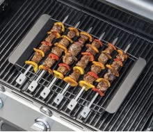 Kebab Skewer Set and RackEvery master grillers needs a set of high-end skewers like these. Grill your kababs right, with this set. Set comes with 6 skewers and a frame, which is great for keeping your skewers from slipping between the grill grates. The elevated frame also keeps kababs from sticking to the grill. Char-Broil product no. 140 587. | Extra Large Roast RackThis large basket makes it possible to roast larger pieces of meat or a whole chicken on the grill. Char-Broil product no. 140 570. | Rib RackThis stainless steel barbecue rib rack makes it easy to cook ribs on your barbecue and helps increase your cooking space. 1 rack holds 4 ribs or chops. Char-Broil product no. 140 569. | Double Burger PressMake beautiful grilled burgers every time with this aluminum burger press. Creates perfectly-shaped patties and holds your minced meat together. Just line it with wax paper, load it up, press down on handle and they’re ready for the grill. And even better, you can press two at a time. Char-Broil product no. 140 539. |