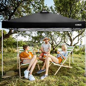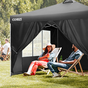 COBIZI Gazebos 3x3m Waterproof Pop up Gazebo With Air Vent, 4 Side Walls, Dark Black