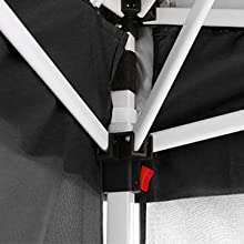 Air VentGazebo vent for air circulation inside when we pop up the tent with sidewalls, especially in winter. | 600D PVC SandbagsCome with 4 sandbags 8 Stakes 4 Ropes, will greatly enhance the stability of the gazebo, especially when it is windy and rainy days. | One Button ReleasePop up frame with quick release button, easily lift the top gazebo and take it down, 3 heights adjustable available, no pinch our fingers anymore. | Waterproof and Anti-UVGazebo is fully waterproof with 210D silver coating oxford fabric, waterproof pressure can reach 1000pa, more durable than others. |