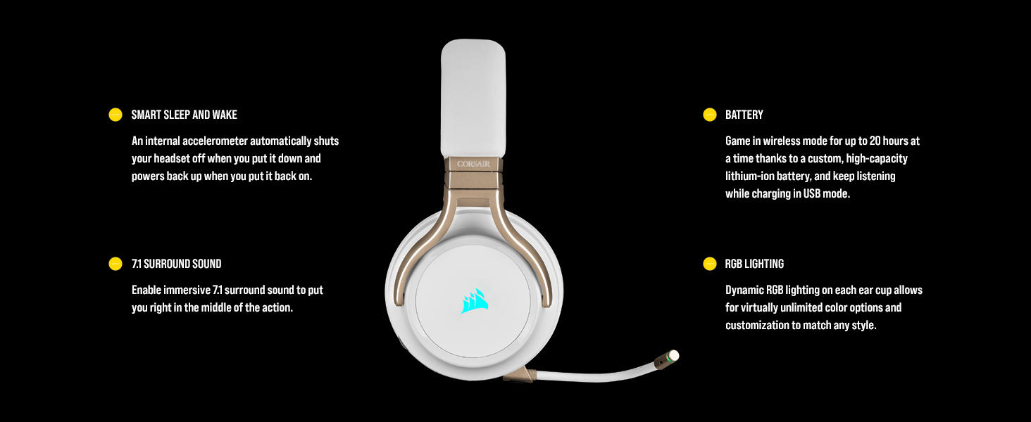 Corsair VIRTUOSO RGB WIRELESS High-Fidelity Gaming Headset (50mm High-Density Neodymium Speakers, 60ft Signal Range, Omni-Directional High-Bandwidth Microphone) Pearl CA-9011224-EU