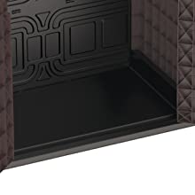 This looks good and fits one wheelie bin plus my 2 small folding tables and 4 folding chairs. I was pleasantly surprised. It took my son and I quite a while to construct and we felt that the instructions were not always easy ( the metal bar/rod in in one of the panels when it arrives. ) . It has been waterproof so far through bad weather. Bad points are that the clip that fastens onto the bin (lifting the bin lid when the roof opens up) doesn’t always stay on. The doors do fasten but can be a bit flimsy. It’s ok for what we need. They may be more secure if padlocked. Overall, I am pleased with this.