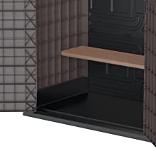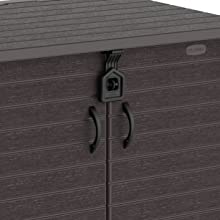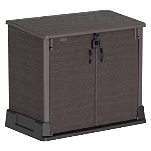 Duramax Cedargrain StoreAway 850L Plastic Garden Storage Shed – Outdoor Lockable Storage Shed – Durable & Strong Construction– Ideal for Tools, BBQs & 2x 120L Garbage Bins, 130 x 74 x 110 cm, Brown