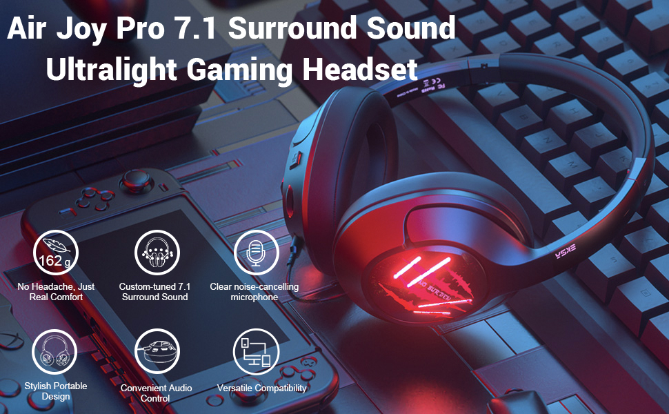 EKSA USB Gaming Headset, 160g Wired Headphones with Microphone for PC PS4 PS5 Xbox One Laptop, 7.1 Surround Sound, Noise Cancelling Mic, LED Light, Audio 3.5mm Jack