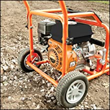 One Engine Multiple Outputs | Reliable 6.5HP Engine | Easy PortabilityKey features include the wheel kit, which provides excellent portability around site and a manual foot brake locks the machine into position for secure operation. Also features foldaway handle for convenient storage and deployable output frame with quick-release latch system. | The EVO-System FamilyThe EVO-System provides ultimate flexibility and versatility. The most effective way to buy petrol driven products; you only need one engine! Choose from a range of compatible outputs including pressure washers, water pumps and generators – save storage space; lock into the EVO-System. |