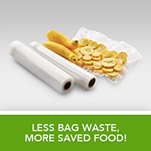 - Includes 1 roll (28 cm × 2,43 m), 2 small vacuum seal bags (0,94 L) and 2 large vacuum seal bags (3,78 L)
