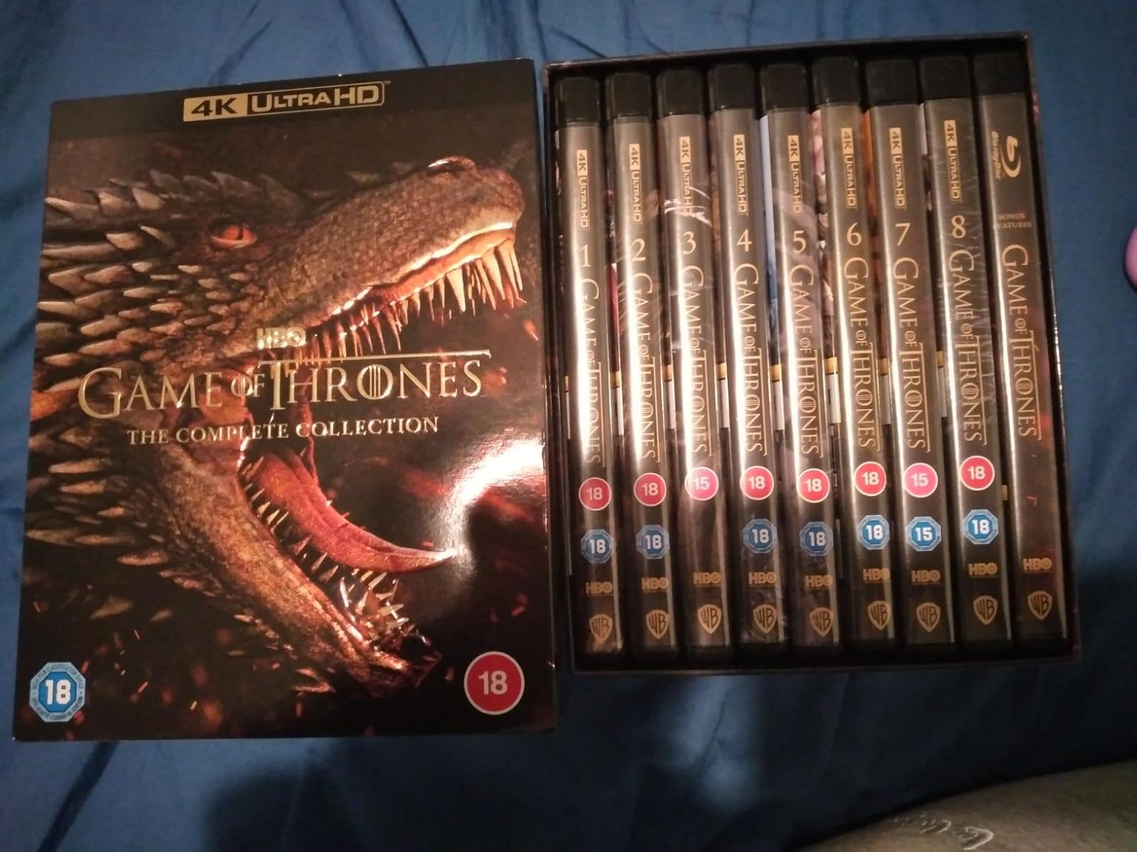 So the 4K discs, wow! This is how to watch game of thrones, crisp, perfect transfer and the Atmos soundtrack is full on. For those that complained about series 8 being too dark and you could hardly see what was happening, watch the 4K transfer on an HDR tv and it truly transforms the picture.