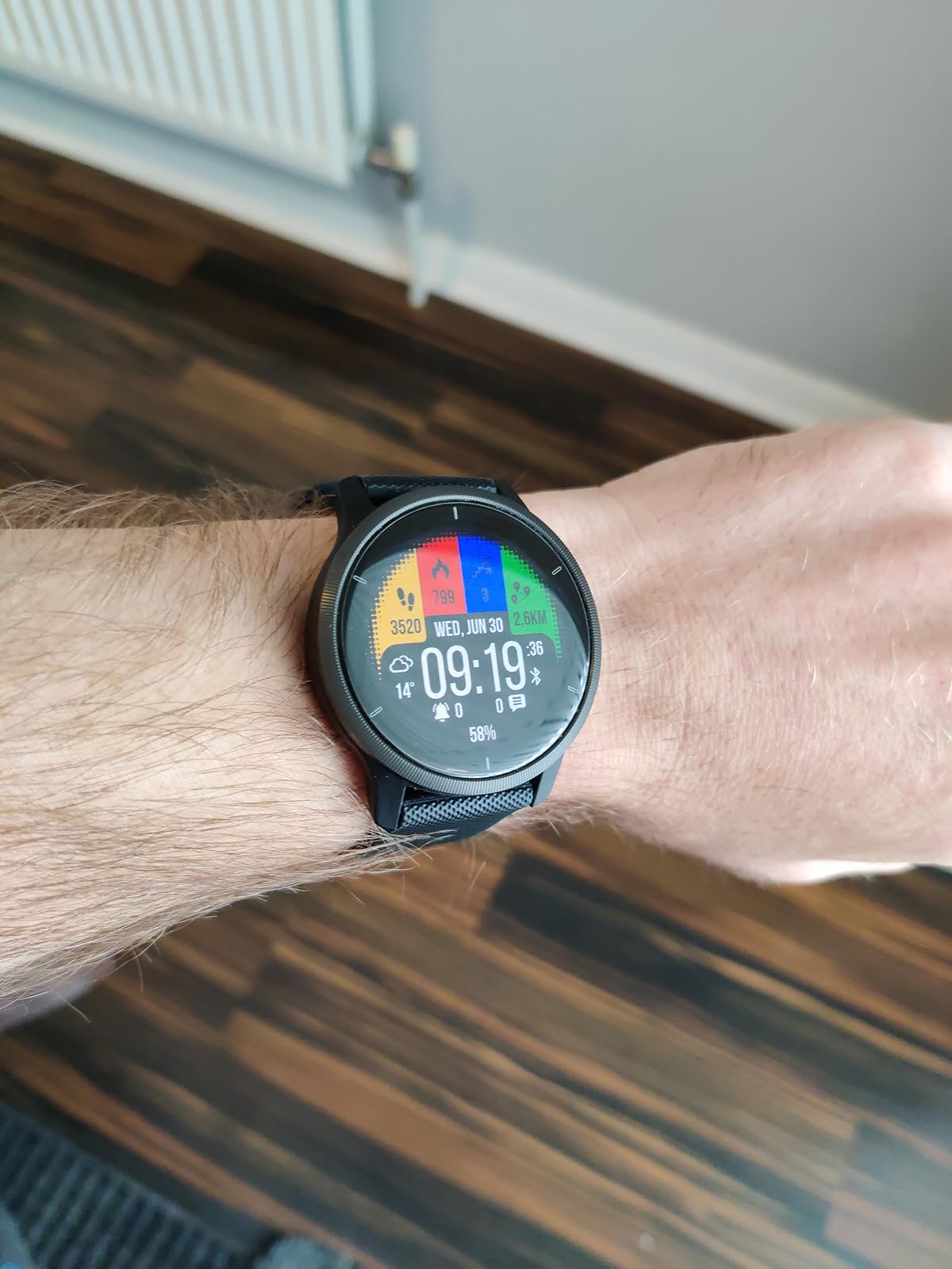My previous watch was a Vivoactive which had a continuous display. This is a lovely watch, but I am disappointed that the display isn’t always on. I do understand that being a smaller watch, it can only house a smaller battery, therefore a continuous display would drain the battery quicker. nevertheless, it is still a feature I would have preferred. even at the expense of charging the battery more often.