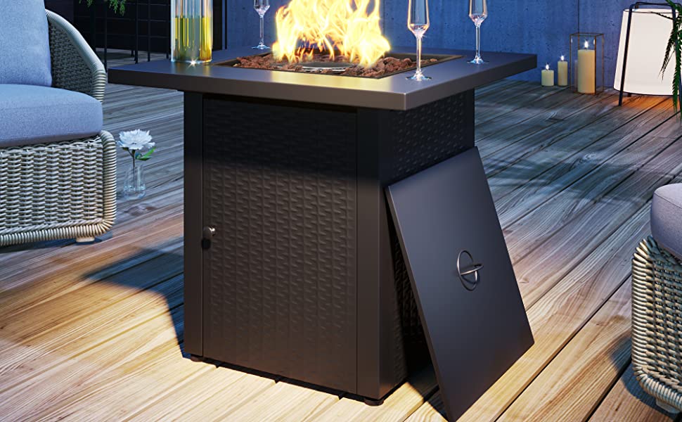 Quite fiddly to put together but very sturdy when completed. Placed in a sheltered area keeps you nice and toasty. Lovely size and great to use as a small table when not using as a fire pi