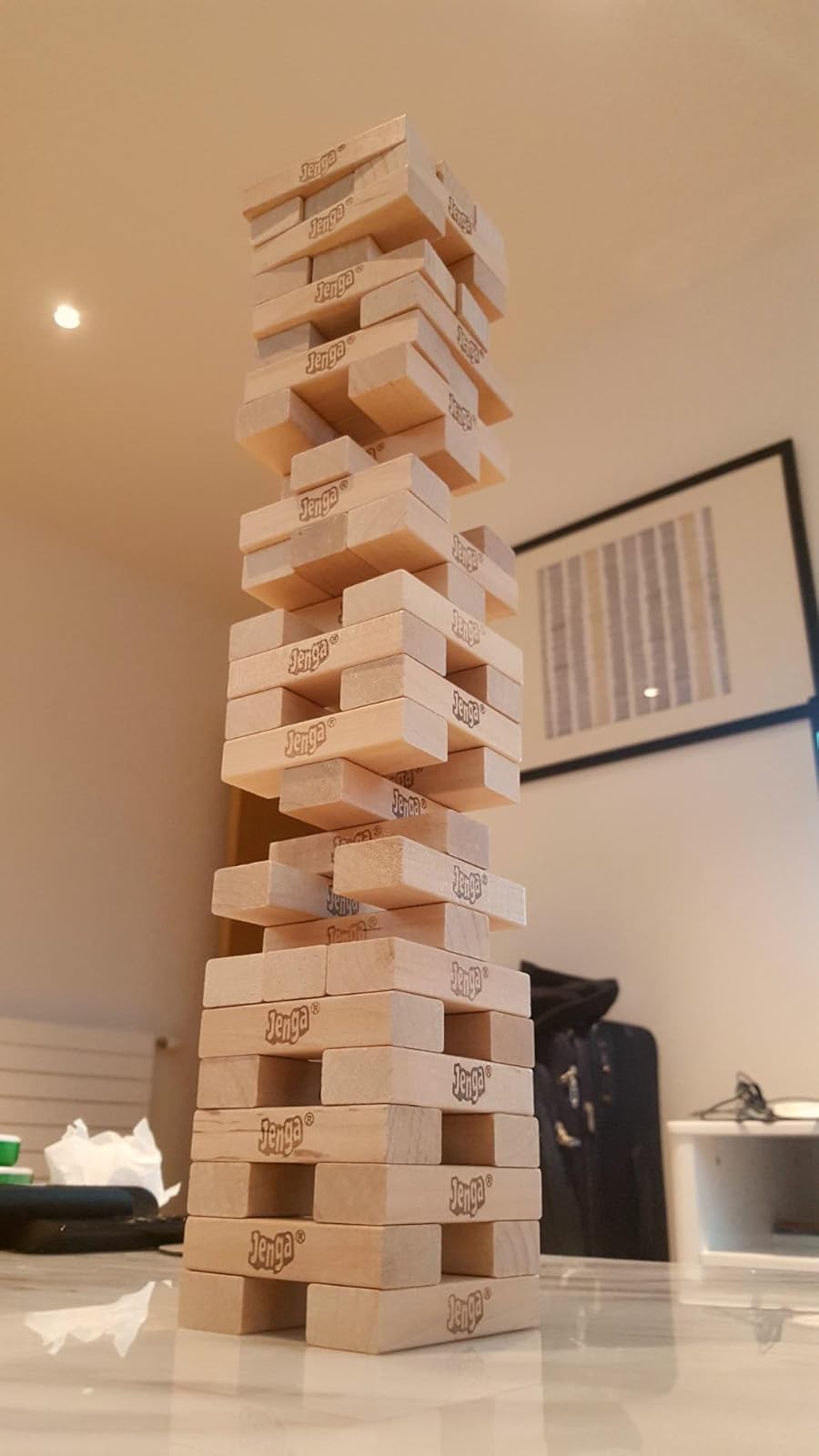 Great product, but there must be one defective brick in this set, which I am unlucky enough to try to remove every time I play this with my wife. She gives it 5 stars for sturdiness, and told me I couldn’t give it 1 star even though it falls over every time I try to use it, so I’ve given it 4 stars because apparently I’m “a bad loser”. My suggestion for the designers is to think again, and make this far more sturdy for those of us who struggle with basic hand/eye coordination.