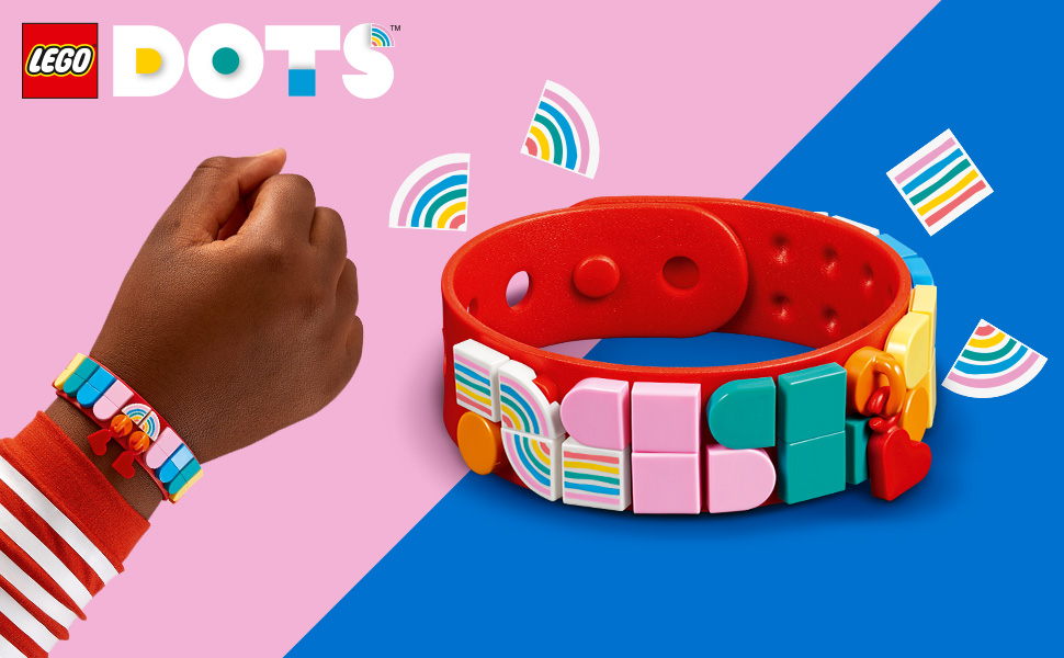 Un kit de cration de bracelet personnalisable LEGO 41953 pour enfants de 6 ans.
