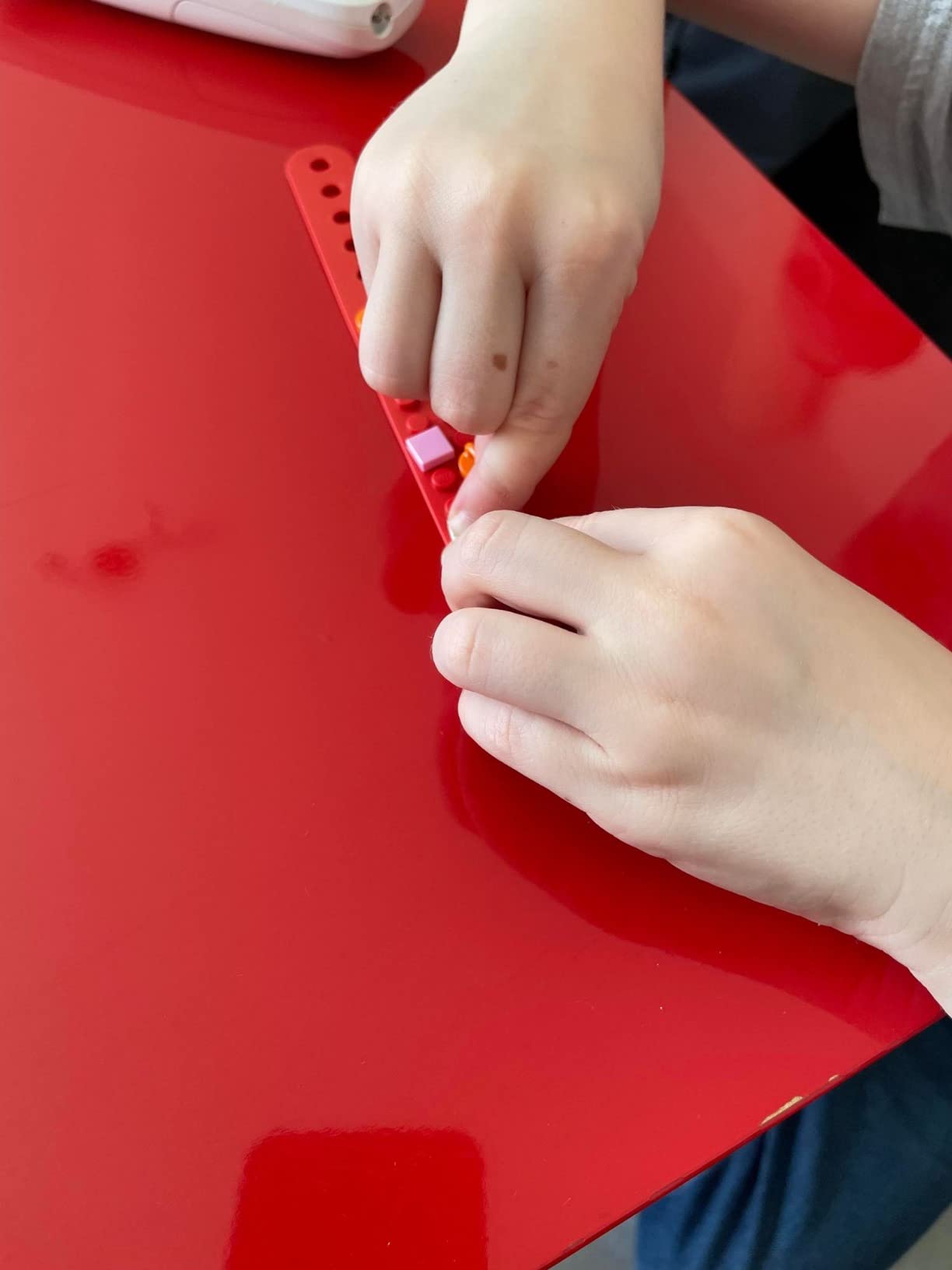 Voici un petit jouet LEGO : un bracelet (qui pourra plaire autant aux filles qu’aux garons) que l’on peut dcorer loisir avec les petites dcorations LEGO DOTS qui sont fournies.