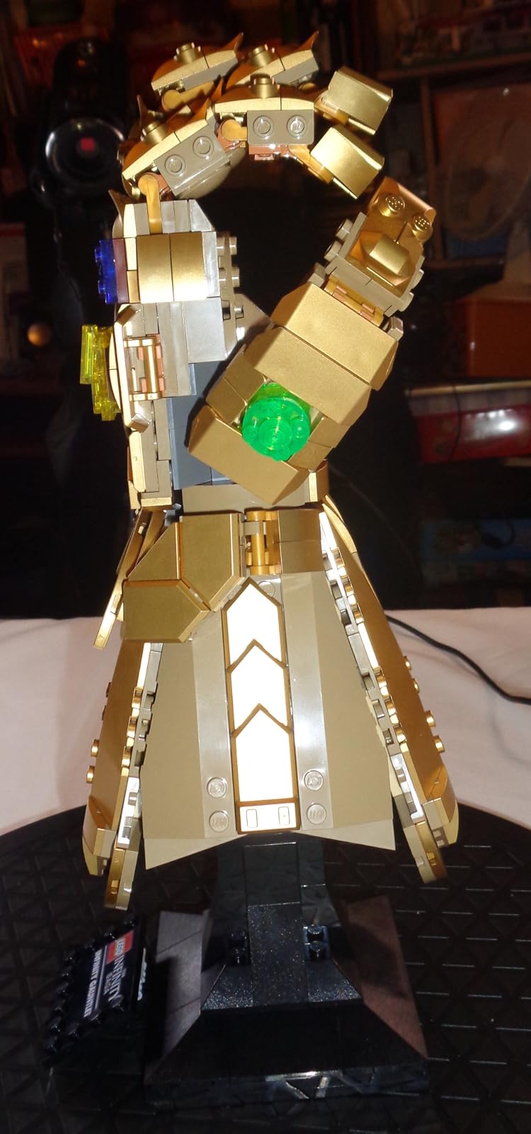 The Infinity Gauntlet with display stand and display card is impressive and would make a terrific and unique gift. Our son usually goes for Star Wars Lego, but was thrilled with this.