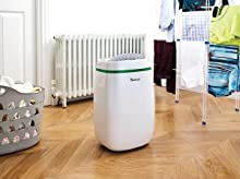 | The dehumidifier has a covered tank to prevent any spillage and a child lock to prevent your settings from being changed. | Digital display to show you the current room reading and allowing you to set a wider range of target relative humidities. | High quality low energy. | Suitable for drying laundry which makes it popular with those living in flats and apartments. |