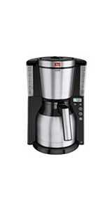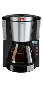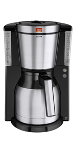 With its patented AromaSelector to ensure intensity and temperature preferences, the Look IV Therm Timer filters piping-hot, aromatic coffee into a robust, insulated jug with a reinforced double-wall interior. This resourceful German unit includes an Aroma Selector to flexibly accommodate the varied intensity preferences found within the walls of your home or office. While efficient in energy use and space occupancy, this filter coffee maker can produce 1250ml, with a double-marked water tank available for precise measurement. The cable storage at the machine’s base allows for flexible, space-efficient counter-top placement, where this filter coffee machine will accentuate the room with its classic design of brushed stainless steel and smooth black surfaces. The Look IV Therm’s detachable swivel filter, anti-drip system and machine-washable jug combine well to help you maintain the cleanliness and long-term integrity of this intelligently-designed Melitta coffee maker.