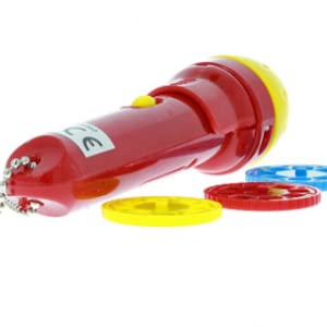 I did not realise this torch would be so tiny. Good for little hands I guess, but how little? Bought 2, one for 4 year old, the other for 3 year old. They’ve had great fun with them. Need to sort out the focus to get a good picture. Comes with 3 small ‘reels’, these may easily be lost. Given 4 stars because they were so, very small.