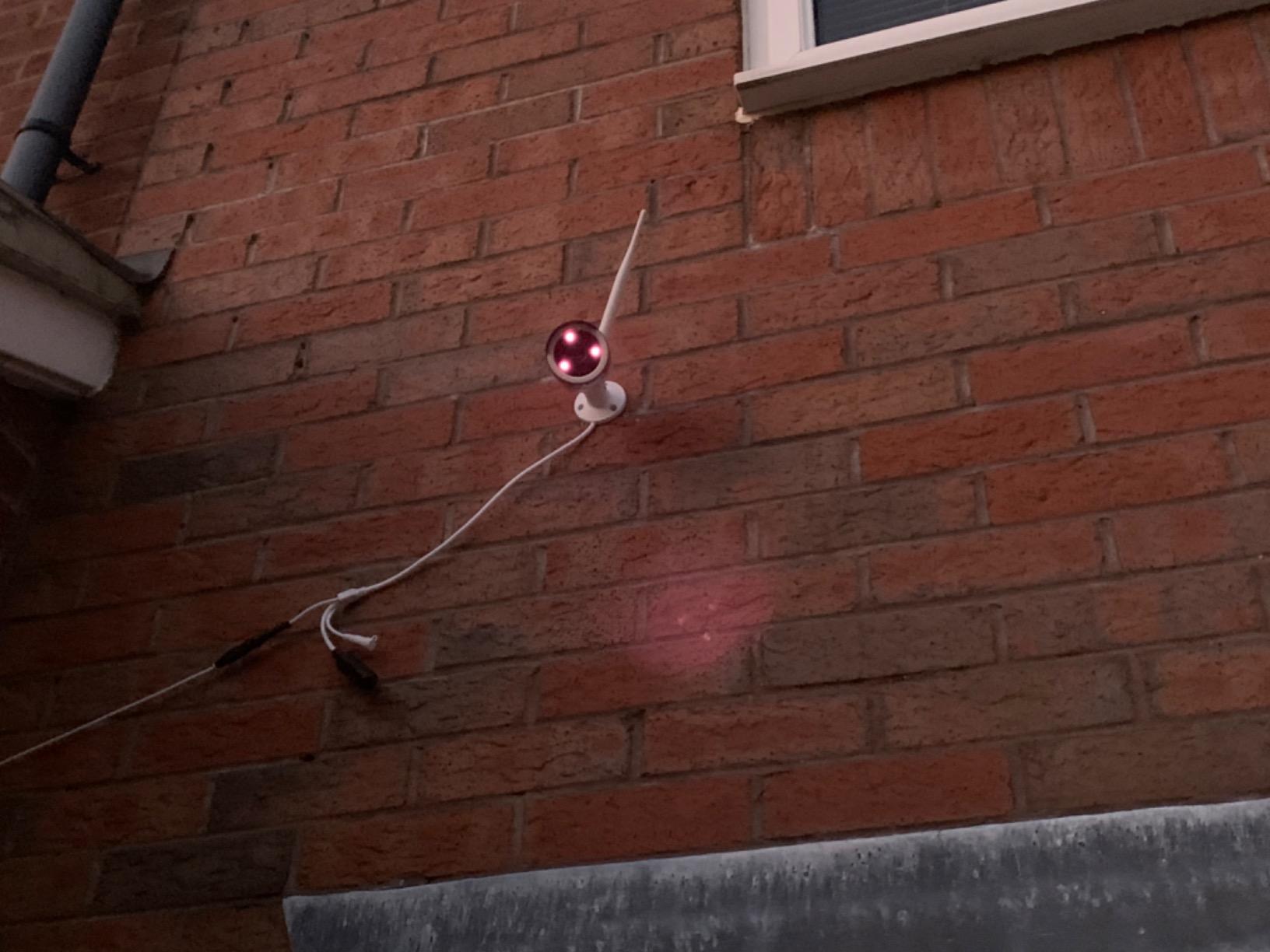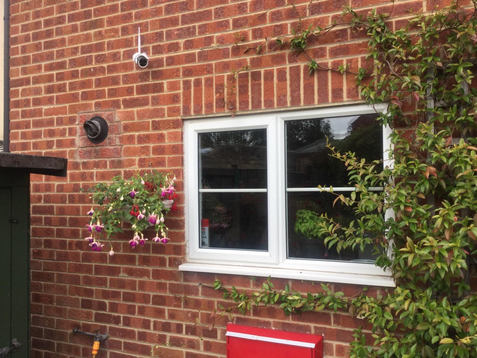 Setup in the garden to monitor our backdoors, attached it to the side of the garage, the hardest part of the setup was drilling through the brick/cinderblock to run the powercable. Everything you need is included (including a masonry drillbit helpfully), and the drillhole diagram is very useful.