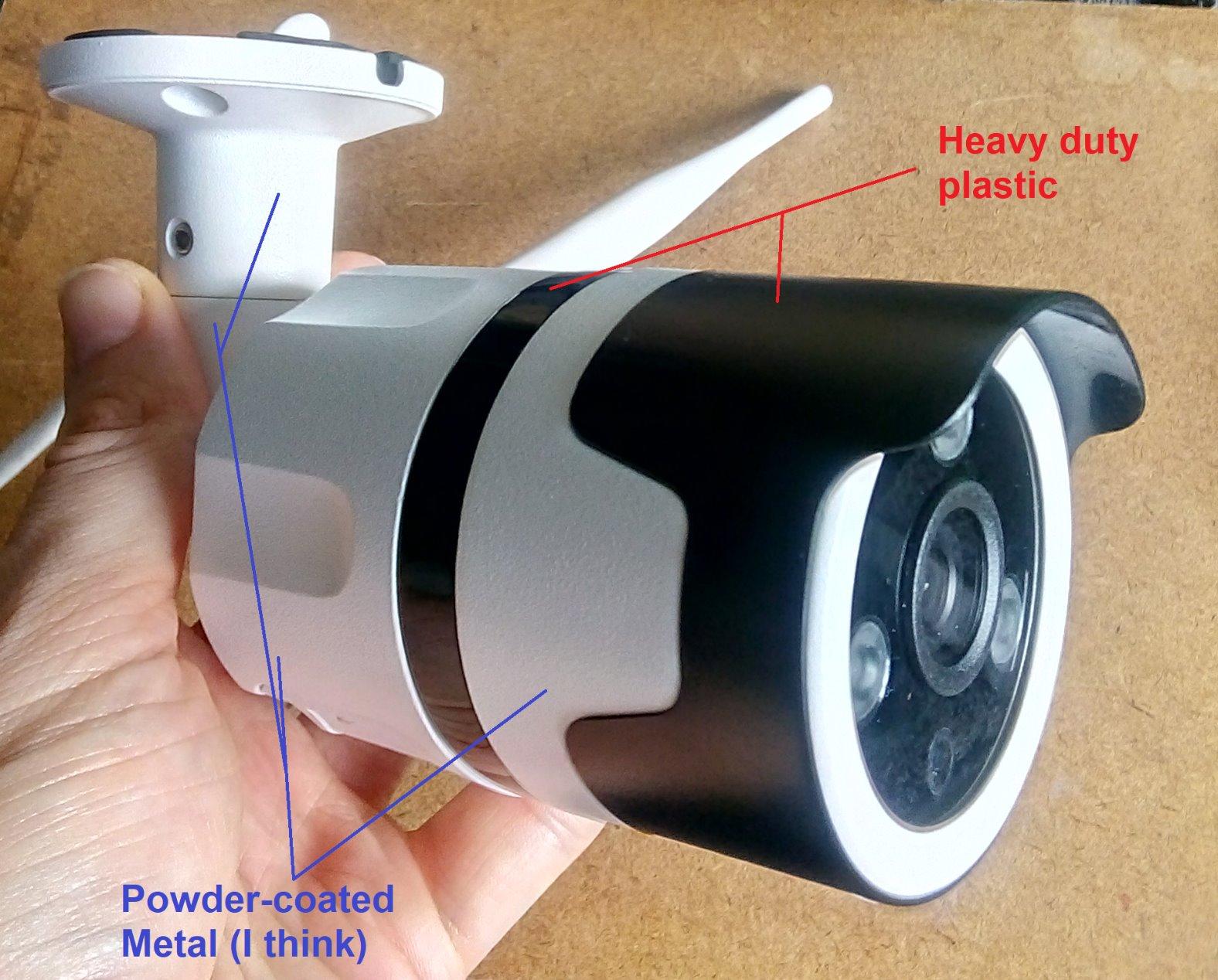 Not as weighty as other CCTV products I have purchased but still sturdy. Has red night lights on it which are clearly visible. Would have preferred not to see these lights but doesn’t matter. Very easy to setup. The camera is brilliant though motion detection is great but haven’t observed the human detection yet which seems to be provided by the cloud platform. Connects to Alexa which is great.