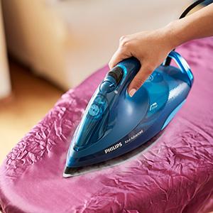OptimalTEMP TechnologyThanks to OptimalTEMP technology, we assure this iron will never cause burns to any ironable fabric and you can iron everything from jeans to silk, from linen to cashmere safely, in any order, without waiting for the temperature to adjust or pre-sorting clothes. Philips steam irons with OptimalTEMP makes your ironing easier and faster and has been tested and approved by independent textile experts for its excellent ironing performance. | Continuous Steam up to 55 g/min Penetrates up to 20% More Steam Through FabricStrong and consistent steam output penetrates up to 20% more steam through fabric to remove creases faster.* | SteamGlide Plus Soleplate for Ultimate Easy GlidingOur exclusive SteamGlide Plus soleplate – with its advanced titanium layer and six-layer coating – delivers ultimate gliding performance over any fabric. Non-stick, scratch-resistant and easy to keep clean. |
