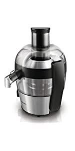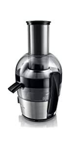 QuickClean TechnologyThe Philips juicer is designed for easy cleaning thanks to QuickClean technology. Cleaning can now be done within 1 minute, thanks to the integrated pulp container and smooth surfaces. All removable parts can be cleaned in the dishwasher. | All Pulp in One PlaceJuicing can be messy, but with this simple design feature all the pulp is collected in the only place where it should be: the pulp container. | Drip-Stop SpoutWith one simple twist, you prevent the juice from dripping and keep your counter top clean. | Health tips and recipesDownload our free Philips Healthy Drinks app. It’s filled with delicious nutritionist-selected smoothie recipes to fit your needs. |