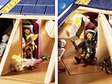 Each of the five chambers inside the pyramid have individual traps | Use the secret swithces to discover more chambersThe back of the pyramid is shaped for better play ability. After removing the pyramid’s sidewalls, even more chambers are revealed for new play possibilities. | |