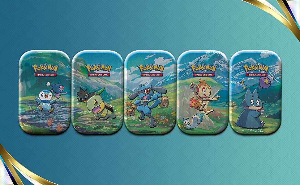 Pokémon TCG: Sinnoh Stars Mini Tin – Chimchar, Pachirisu (2 Booster Packs & 1 Pokémon Art Card) Pokémon TCG: Sinnoh Stars Mini Tins Pokémon Favorites in the Palm of Your Hand! Collect all 5 – Piplup & Mr Mime, Turtwig & Luxray, Riolu & Bidoof, Chimchar & Pachirisu, Munchlax & Drifloon! In each Sinnoh Stars Mini Tin, youâll find: ⢠2 Pokémon TCG booster packs ⢠1 metallic Pokémon coin ⢠A Pokémon art card showing the art from this Mini Tin Contents 2 Booster Packs & 1 Pokémon Art Card 2 Booster Packs & 1 Pokémon Art Card 2 Booster Packs & 1 Pokémon Art Card 2 Booster Packs & 1 Pokémon Art Card 2 Booster Packs & 1 Pokémon Art Card Featuring Piplup, Mr Mime Turtwig, Luxray Riolu, Bidoof Chimchar, Pachirisu Munchlax, Drifloon Check Offer Price Dimensions: 7.6 x 2.5 x 12.4 cm; 100 Grams Model: Chimchar, Pachirisu Material: Tin, Paper, Plastic Pack Quantity: 1 Batteries Required: No Age: 6 years and up Assembly: No Material: Tin, Paper, Plastic Quantity: 1