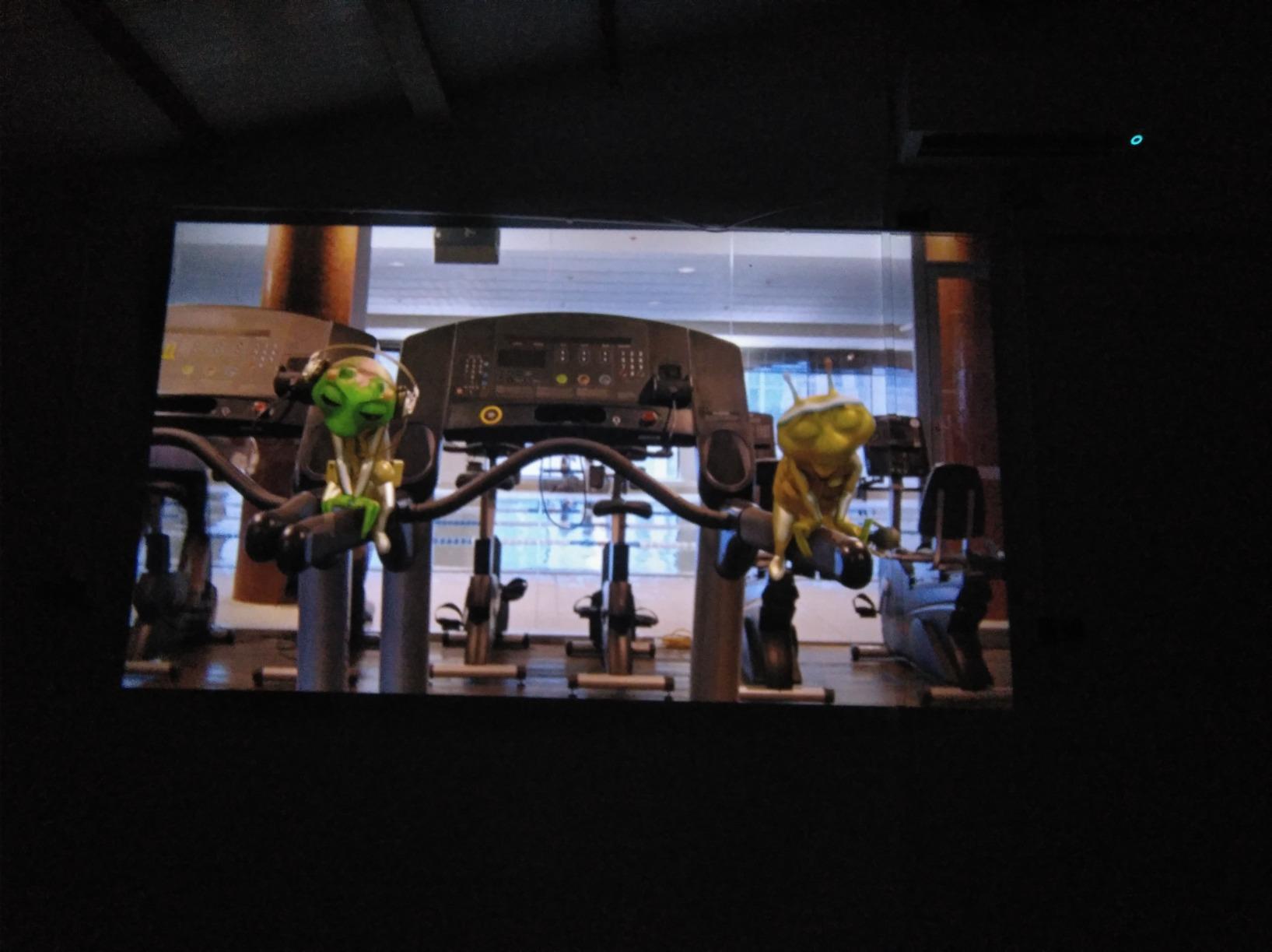 Configurado en HD 1920×1080 con un Fire Stick TV de Amazn. Impresionante. Lo utilizo tanto con el altavoz interno, como con uno externo conectado por BT del Fire Stick. Es un pelin ruidoso, pero no molesto. Cuando ests viedo una pelcula o cualquier otra proyeccin no se nota nada.
