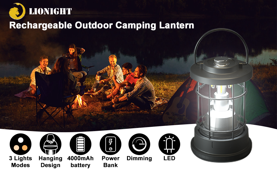 Rechargeable Camping Lantern, Retro Outdoor Portable Lantern with 4000 Power Bank …….