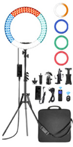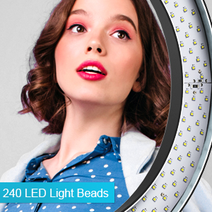 | Adjustable 180°Rotaion The ring light with adjustment the angle 180 degrees, only use the nut for adjust, which could meet your needs shooting request, flexible using. | 240 LED Beads, High CRI & TLCI Designed with 120 White and 120 Yellow LED long lasting LED bulbs with high CRI. No ultraviolet and infrared light radiation, low heat output. | CRI>97 & TLCI >99 Our color rendering and clarity will be better than others. We are committed to high-quality products to get your support. |