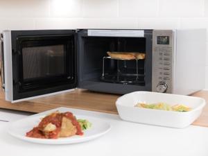 Steamed Salmon, Baby Potatoes and AsparagusFunction: Microwave and Grill Ingredients: 2 salmon fillets 300g baby potatoes 250g asparagus 1 tsp butter 2 slices lemon 1 tbsp. chopped dill Salt and pepper Method: 1. Place the potatoes in a microwavable container with the butter. Season and cover with cling film. Cook on full power for 4-5 minutes or until cooked. Keep covered. 2. Meanwhile, place the salmon in a microwavable container with the lemon and dill. Season and cover with cling film. As soon as the potatoes are cooked, cook the salmon on full power for 3 minutes. If necessary, extend the cooking time by up to 2 minutes, checking at regular intervals until the salmon is cooked through. Place the salmon under the grill for 2-3 minutes if you prefer a crisp grill finish. 3. Finally, wash and trim the asparagus, cover and cook for 2-3 minutes, then serve with the salmon and potatoes. | Ciabatta PizzaFunction: Grill Ingredients: 2 small ciabatta loaves 300ml jar of tomato pasta sauce 150g grated cheddar cheese Pizza toppings of your choice, such as pepperoni and sliced pepper Method: 1. Preheat the grill function for 5 minutes using your microwave instruction manual as a guide. 2. Slice the ciabatta loaves in half to make 4 long slices. 3. Place the ciabatta on a baking tray and on a high grill rack. Lightly toast the bread for 2-3 minutes on each side. 4. Spread the ciabatta with a layer of tomato sauce and top with the grated cheddar cheese. 5. Add additional pizza toppings of your choice. 6. Place the pizzas back under the grill for 5-10 minutes, or until the cheese is melted and golden brown. Enjoy! | Fuss-Free Poached EggFunction: Microwave Ingredients: 1 medium egg Pinch of salt Recently boiled water Method: 1. Using water from a recently boiled kettle, half fill a microwavable mug. 2. Add a pinch of salt and carefully crack the egg into the water. 3. Microwave on full power for 30 seconds. 4. Check the egg. If necessary, cook for a further 30-45 seconds, checking at 15 second intervals until poached to the desired consistency. 5. Drain and serve. Why not try… Serving with toasted English muffins, steamed spinach and Hollandaise sauce. | Perfect Jacket PotatoFunction: Microwave Ingredients 1 medium baking potato 1 tbsp olive oil Sea salt Method: 1. Thoroughly wash and dry the potato. 2. Using a fork pierce the potato skin in 4 or 5 places. 3. Rub the oil and sea salt into the potato. This helps to crisp up the skin for an oven-style jacket potato. 4. Place on a microwavable plate and cook on full power for 4 minutes. 5. Turn the potato and cook for a further 3-4 minutes, checking the progress at 1 minute intervals.* 6. Serve with your favourite filling. *Cooking times will vary depending on the size of the potato |