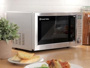 About your Russell Hobbs microwaveMicrowave ovens do not generate any heat themselves but instead cause water molecules in food to vibrate. This vibration produces heat that cooks the food. This is why your food will come out of the microwave piping hot, when your utensils inside the microwave stay much cooler. Microwaves cannot go through metal, so the inside of the appliance is lined with metal. The door is lined with a fine metal mesh which stops microwaves getting through. When using the grill function, please allow 5 minutes to pre-heat the grill to the correct temperature before using. Cleaning Avoid using scouring pads, steel wool or other abrasives. Warm soapy water and a sponge should get rid of all moisture and food spillages. | How to get the best cooking resultsReheat With five microwave power levels to choose from, you can ensure all your food is cooked or re-heated to the optimum temperature. Auto-Defrost This microwave has automatic defrost settings, all you have to do is input the weight of the food and the microwave selects the ideal defrost time. Auto Cook Menus The RHM2031 also features pre-programmed auto cook menus such as pizza, fish and popcorn, allowing you to cook all your favourite food at the push of a button. Grill Function The grill function on your microwave is ideal for those who enjoy crisp brown food. For example, you can use this microwave to melt cheese on nachos, browning the top of your lasagne and toasting garlic bread. | Avoiding MishapsTo avoid any microwave mishaps it is recommended to take extra care with the following: Low moisture foods (eg. cereals, bagels, dried pasta, pulses and chocolate) – These must be cooked on a low power level for a very short length of time, or preferably not at all. High sugar content foods (eg. jams, syrups) – These foods can become easily ‘super-heated’ when cooked in a microwave oven. Foods containing alcohol – Foods with an alcohol content must not be cooked in a microwave as they could ignite. Foods with a membrane or outer skin (eg. fruits, sausages, potatoes) – Food with a sealed or none porous skin must be pierced to allow pressure and steam to escape. |