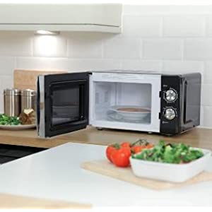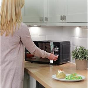 Bought this to replace a fancy (large) combo microwave grill – which was far too complicated for what we wanted. This one looks great, uses far less energy as there is no display and no internal light and perfect size and power for what we want, which is heating up meals, milk, beans etc.
